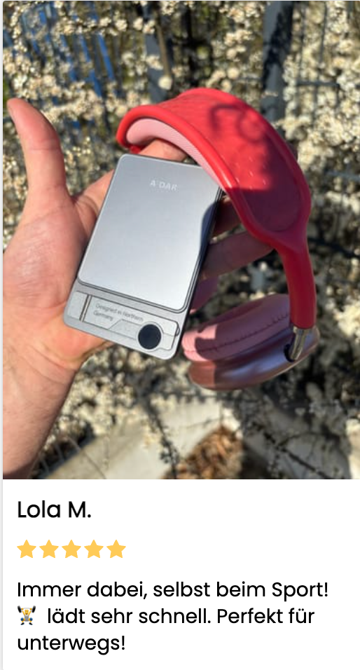 Die 8 mm dünne NordCharge verschwindet in jeder Tasche – und ist sofort da, wenn dein Akku schlappmacht.
